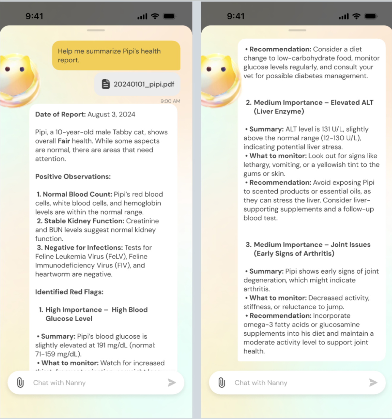 AI Vet Report Translator now lets you translate veterinary language into easy-to-understand pet parent talk. Simply upload your vet report for an immediate summary of complex diagnostics or lab reports. Save time on reviewing bloodwork or waiting on a call back from the vet. Use this for personalized home care instructions or to clarify concerns.