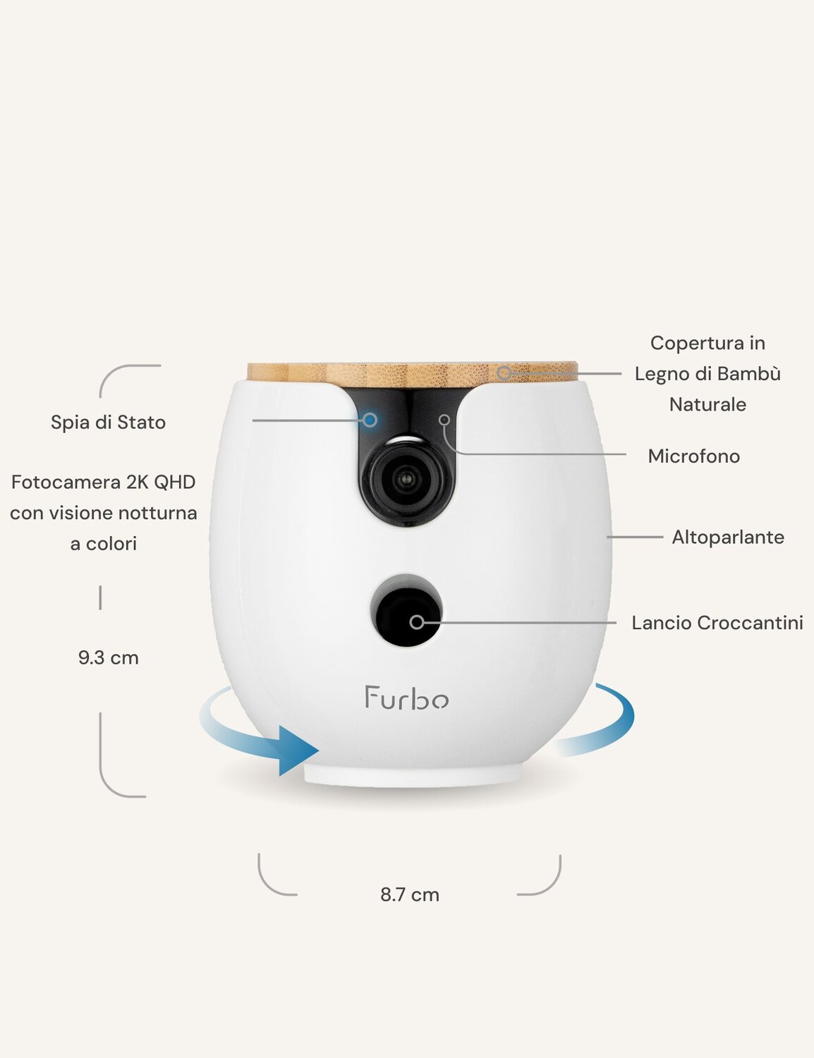 La telecamera per animali più intelligente con IA, ora più piccola - Comprende visuale a 360° con qualità 2K QHD, lancio di croccantini e posizionabile ovunque.