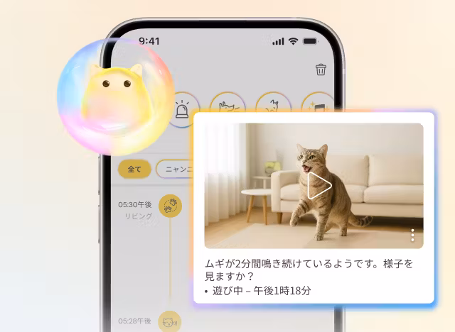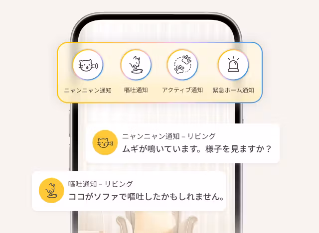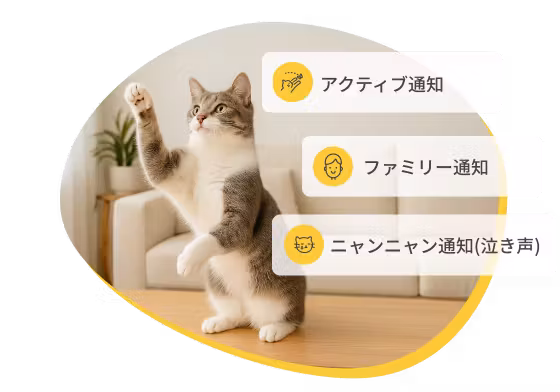 愛猫のお留守番中に起きた異変を瞬時に検知し、通知でお知らせします。体調の変化から、いたずら行為まで外出先でも確認できて安心です。