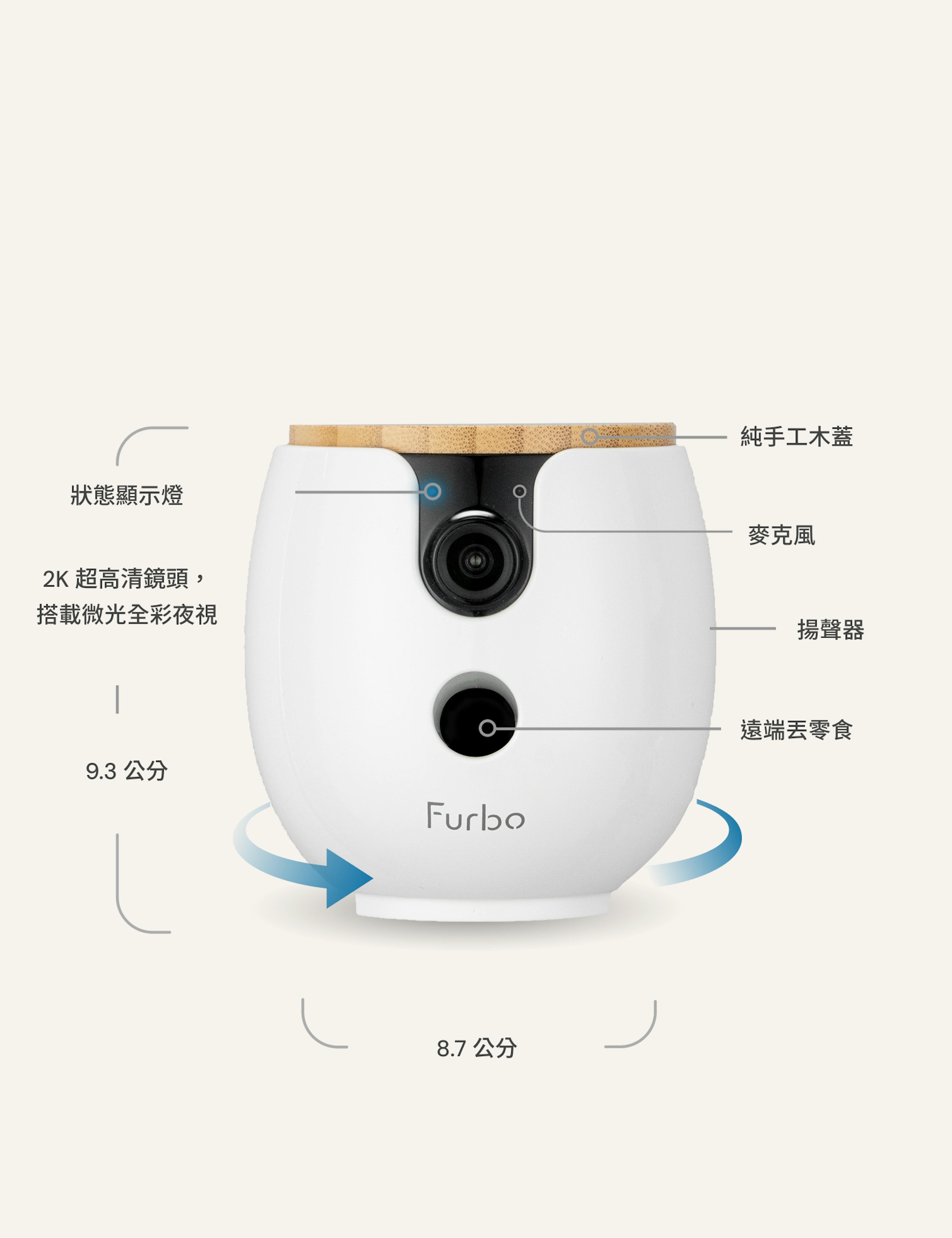2K超高清 360°全景視角,遠端丟零食互動,放哪都完美。